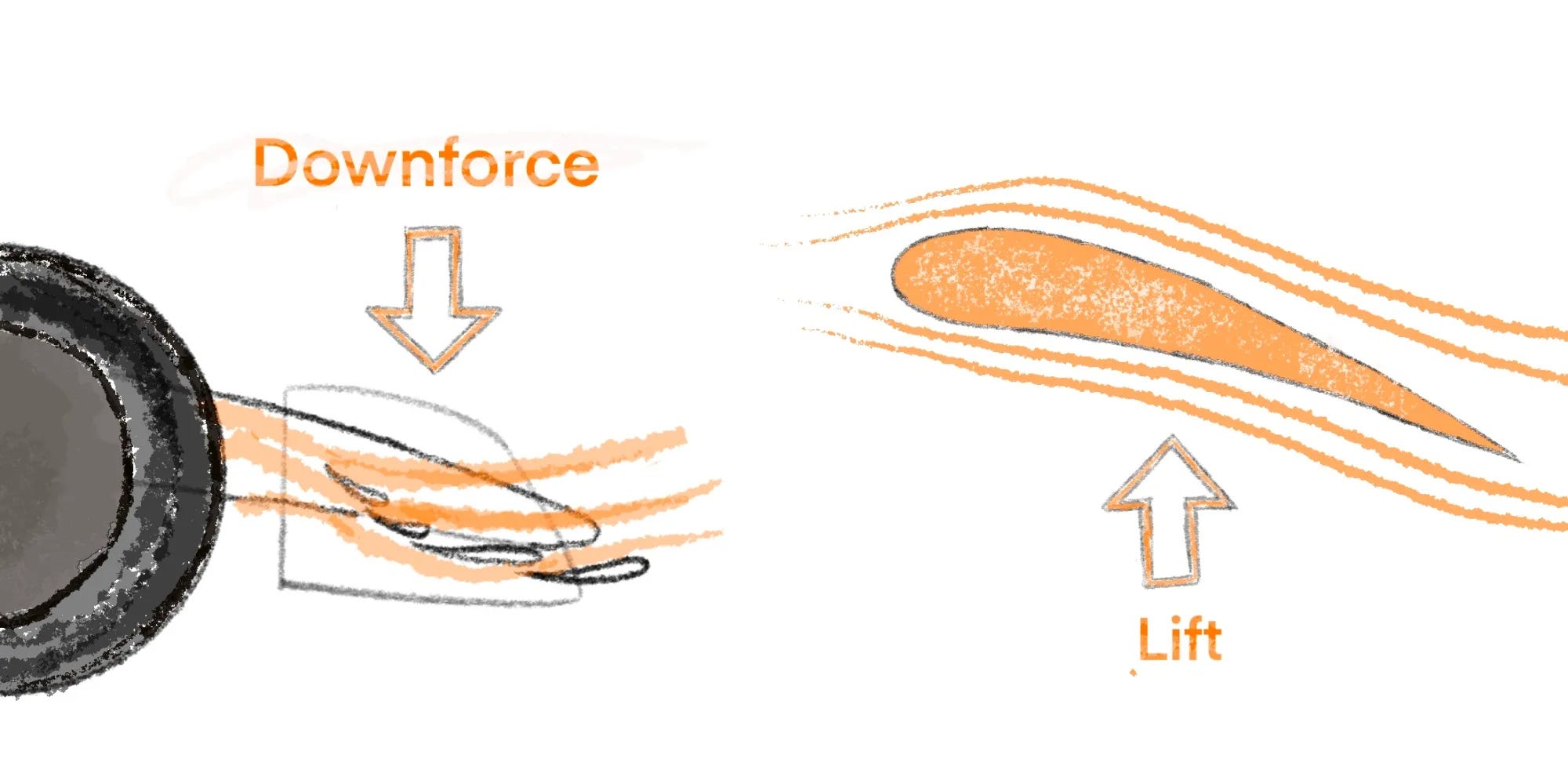 Airplanes use wings for lift—an upward force that counteracts the effects of gravity allowing a pilot to fly high into the air. Formula 1 cars, on the other hand, use wings to increase downforce—the opposite of lift.