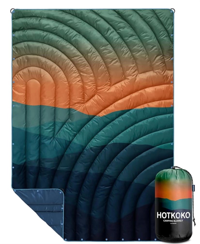 I love my down camping blanket as it packs away easily but is lightweight and warm.